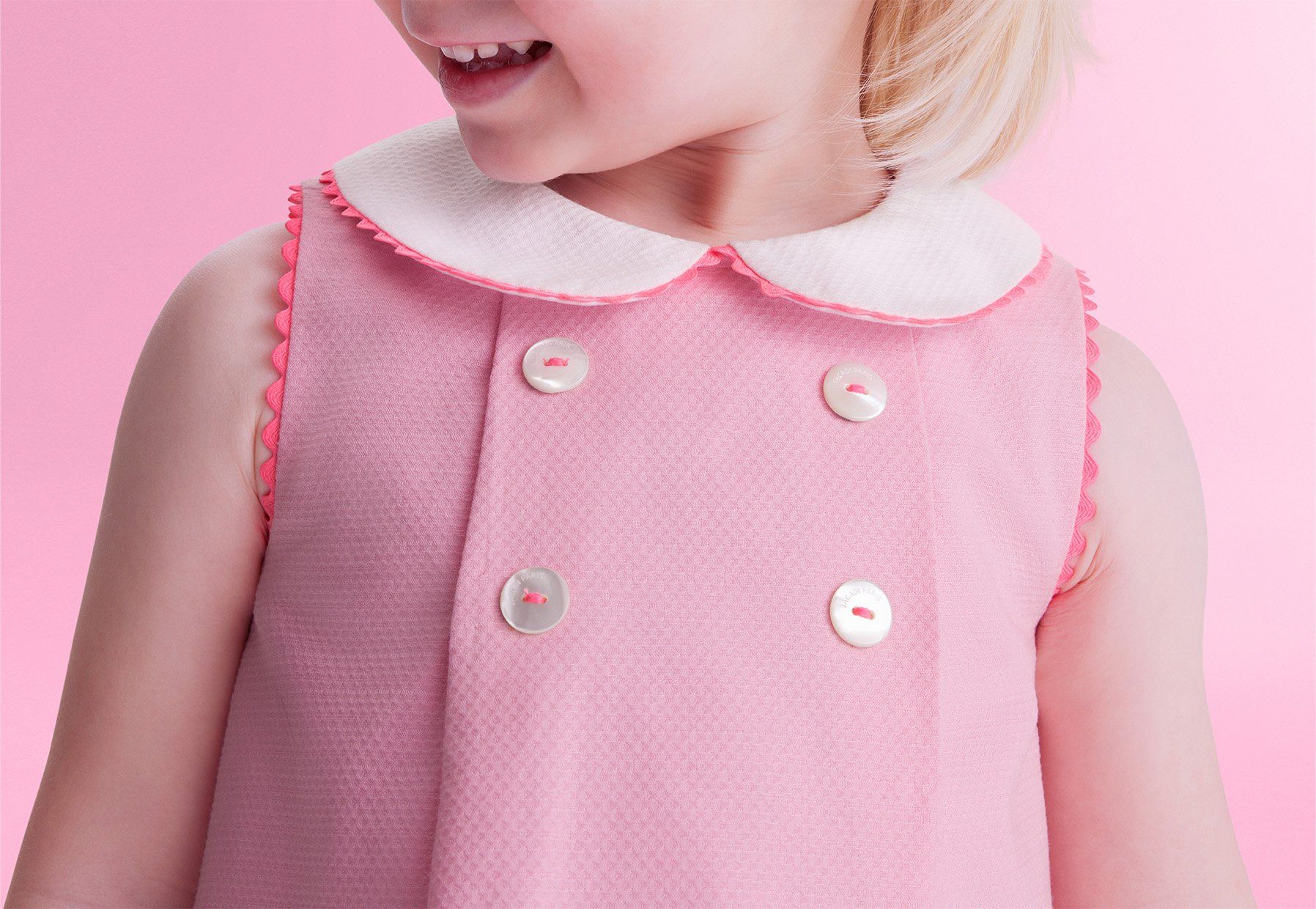 Jacadi kreiert bezaubernde Kragenkleider mit Stil und Eleganz. Claudine-Kragen, festonierte Kragen, Blütenblätter, Brustkragen... sind ebenso eine Ansammlung von Know-how und Hauscodes, die Kleidern für kleine Mädchen Eleganz und Raffinesse verleihen.
