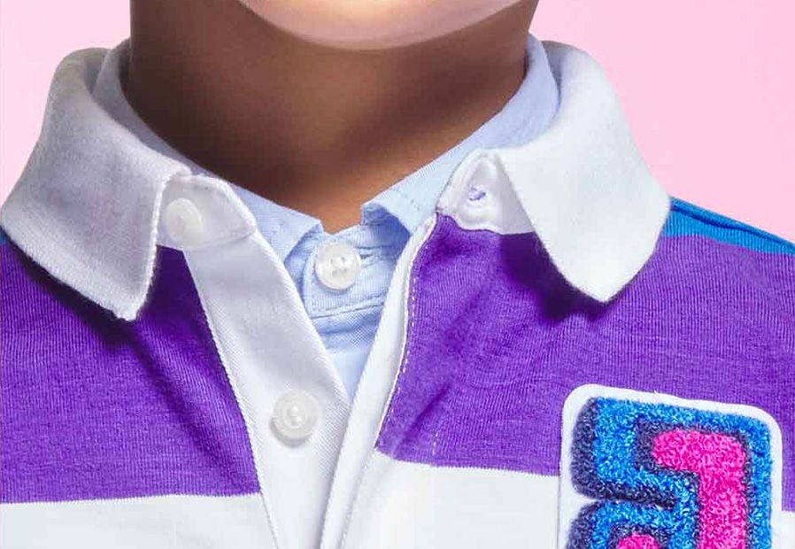 Der Jacadi-Zauber: Bunte Streifen beleben den Retro-Chic des weißen Basic-Poloshirts.